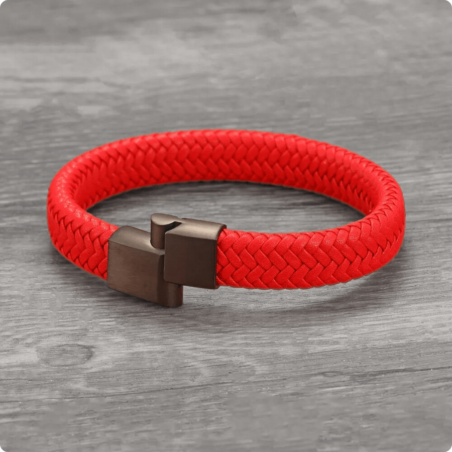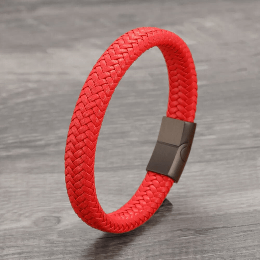 Make a bold statement with our radiant hand-woven genuine leather Crimson Defender bracelet.