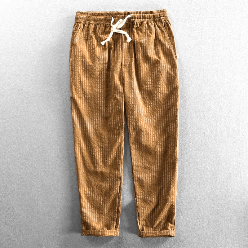 Crafted from a premium cotton-linen blend, these pants deliver breathable comfort and a relaxed fit for all-day ease. Combining soft fabric with an elastic drawcord waist for that perfect fit. Your go-to pants for casual outings or relaxed weekends.